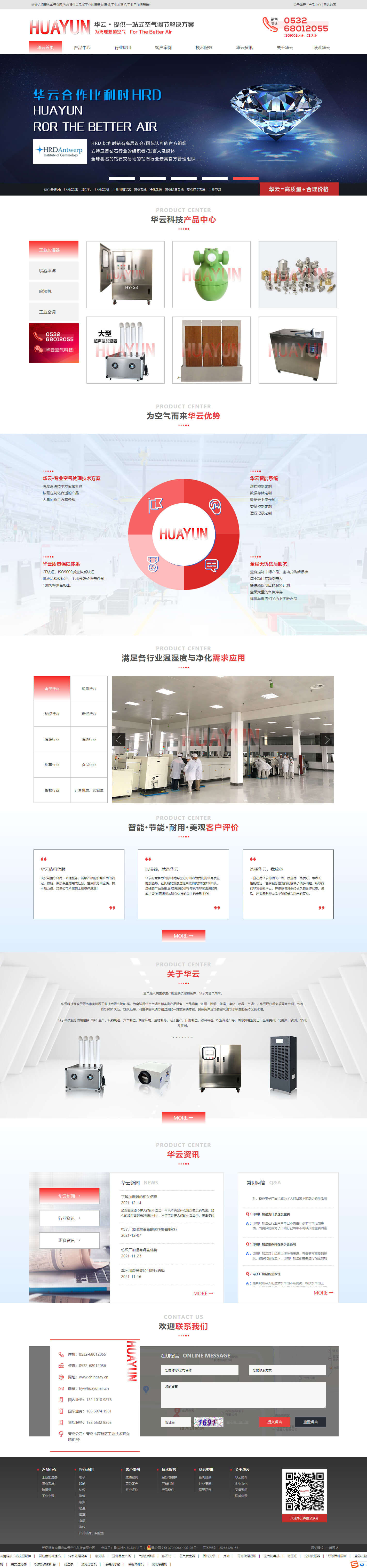 空氣是人類生存生產的重要資源和條件,華云為更佳的空氣! 青島華云空氣科技有限公司,專注智能濕度控制領域 青島華云空氣科技有限公司落座于青島市高新區工業技術研究院B1樓,主要科研、生產、銷售、服務 “空氣檢測系統、工業加濕器、噴霧系統、除濕機、工業空調、凈化系統”...